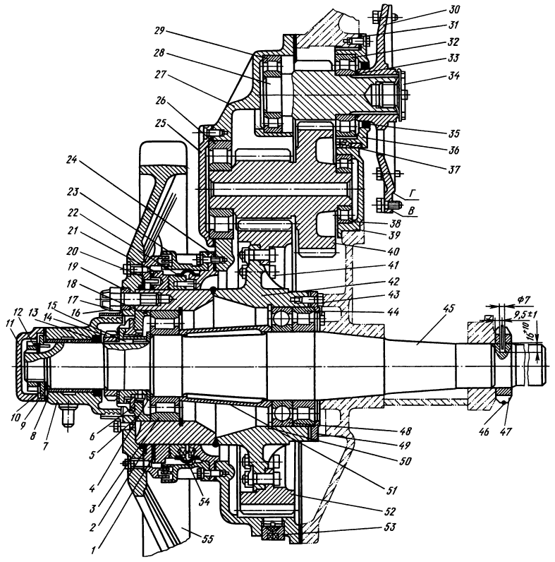 7 — ведущая шестерня,