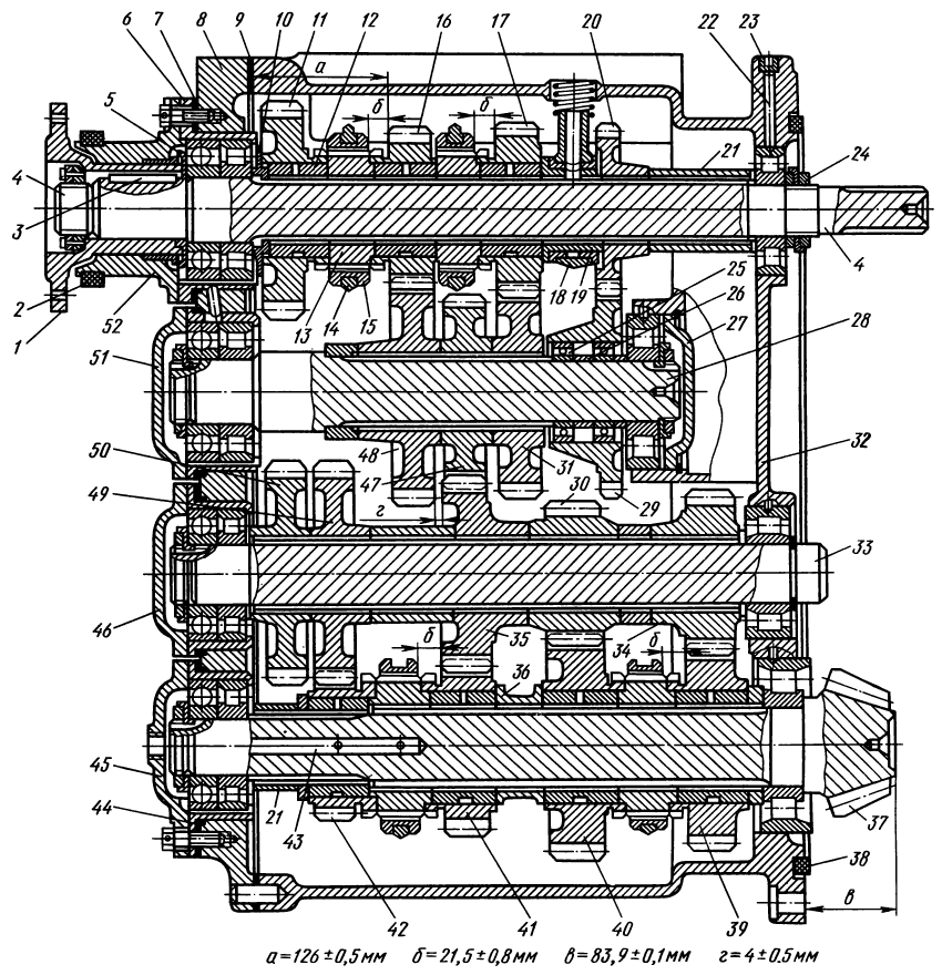 2 — штуцер подвода масла к ведущему валу коробки,